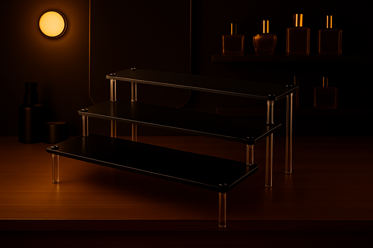 Elevate your fragrance collection with a modern acrylic display that combines elegance and functionality, keeping your perfumes organized and beautifully showcased.